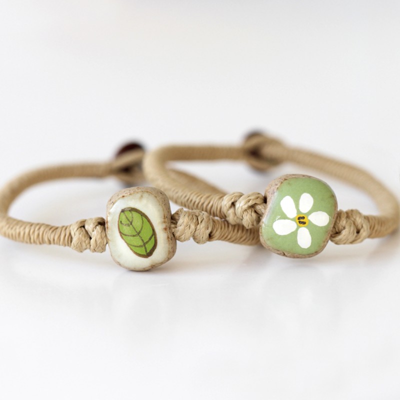 Z povrázkov vytvorený a keramickým glazovaným kamienkom dozdobený prírodný náramok, je veľmi IN v tohtoročnom letnom období. Bali Beads je módnym trendom. Doplnok, ktorý sa hodí na každodenné nosenie. Môžete si vybrať z dvoch motívov, znamením listu alebo kvetu Frangipani. Náramok má svojej nositeľke priniesť šťastie a požehnanie. Opravdu originálny šperk, ktorý poteší každú romanticky a duchovne založenú dámu.