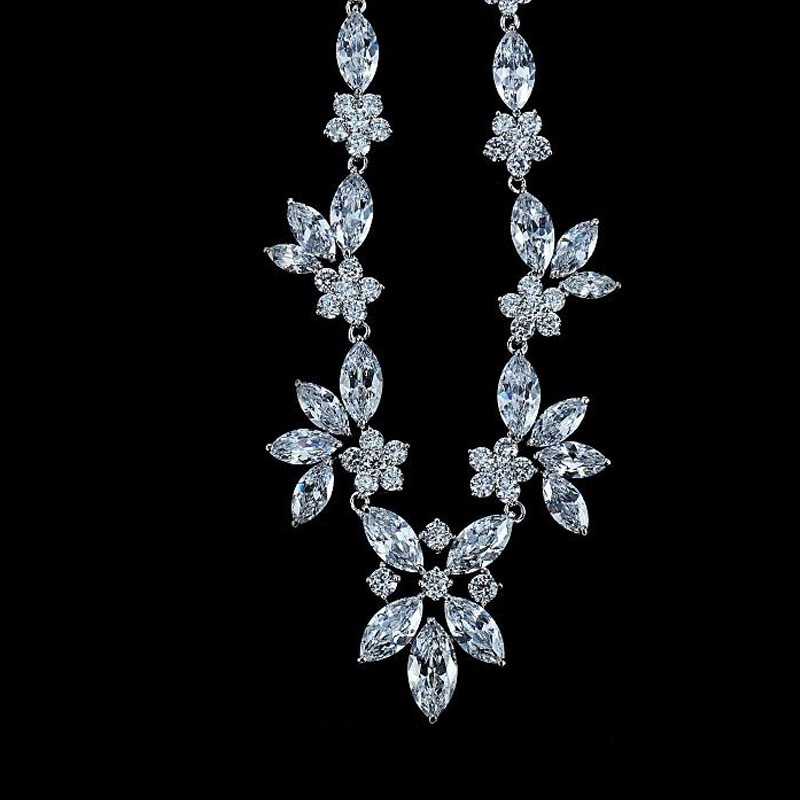 Nežná súprava náhrdelníka a náušníc je vytvorená z krehkých lístočkov. Jemnosť a krehkosť tohto šperku podčiarkujú priehľadné kubické zirkóny. Nevesta, ktorá sa prizdobí touto bižutériou vo svoj významný deň, určite očarí nielen ženícha. Avšak aj pri iných slávnostných príležitostiach sa táto súprava iste uplatnia - divadlo, koncert, tanečné, atď.