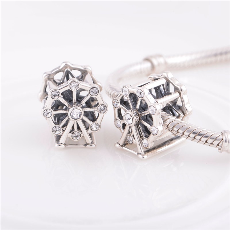 Originálny prívesok v tvaru kolotoče vykladaný priehľadnými kryštály. Prívesok je vyrobený z vysoko odolného striebra a hodí sa tak na každodenné nosenie.